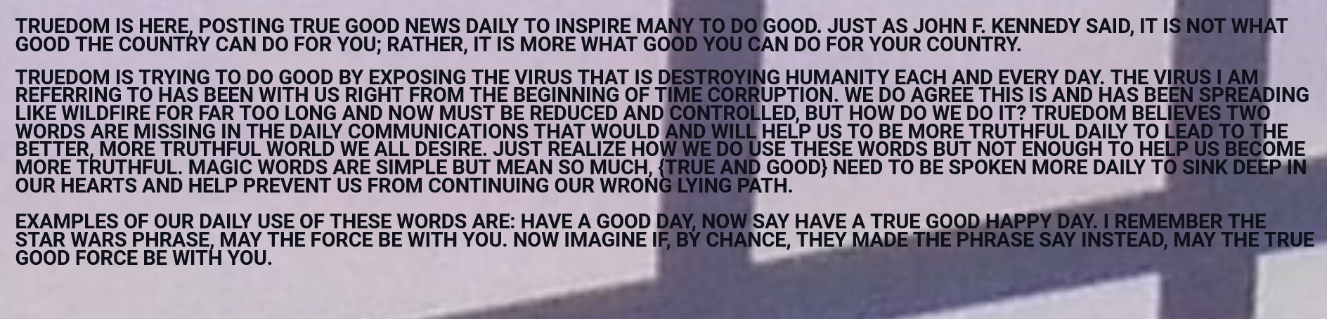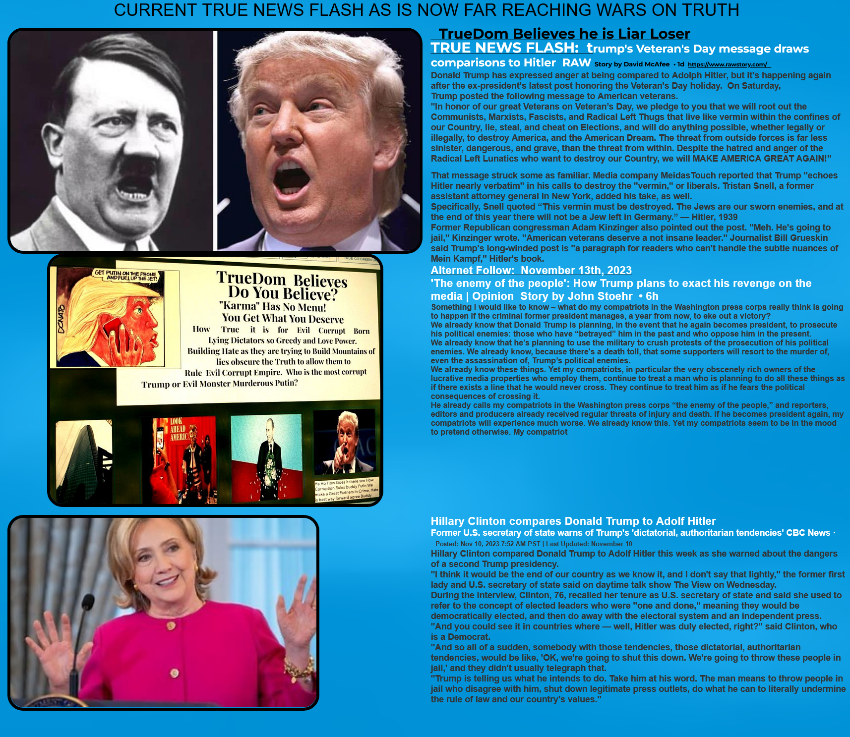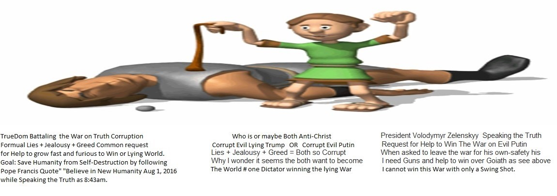 My mission and Destiny to help do my part to build and become a Truth Advisor, Influencer for our newfound Truthful World we Must Create to be Corruption-Free for Future generations to live in True Peace, building on our only hope for God's Planet Earth to withstand WWW 111 and Climate Disasters from tomorrow and beyond is my hope and prayer. I am and have created seven plus many True Websites to combat all the growing lying fraudsters surfing the Wild West Web looking to Scam many lonely Seniors, as what happened on January 31st, 2024, when I was a victim of evil-spirited AI Pop Screen Fraudsters. That day, I lost my War on Truth, as we do have life battles dealing with our present corrupt, lying world, which must change now. The present American dictatorship has declared an Economic and Truth Trade War. It is bent on BREAKING US JUST SO THEY THEN CAN OWN US GIANT GOLIATH TRUMPONE MOB BOSS OF AMERICA USA. OUR PRIME MINISTER